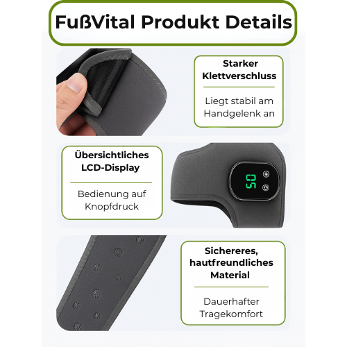 Dieses innovative elektrische Gerät wurde speziell entwickelt, um Fußschmerzen effektiv zu lindern – und das ganz ohne Medikamente. Durch die Kombination aus wohltuender Wärme und gezielten Elektrostößen werden verspannte Muskeln tiefenwirksam stimuliert und die Durchblutung spürbar gefördert. Das Ergebnis ist eine schnelle und natürliche Schmerzlinderung – ideal bei Plantarfasziitis, Verspannungen oder müden, geschwollenen Füßen nach einem langen Tag.